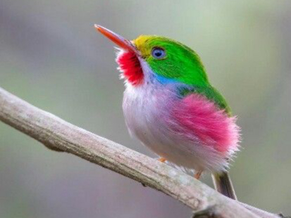 Tocororo: Es un ave trepadora, endémica de Cuba, en género y especie. En su vistoso plumaje se localizan con facilidad el rojo, el azul y blanco, los colores de la bandera cubana, por ello se considera el Ave Nacional.